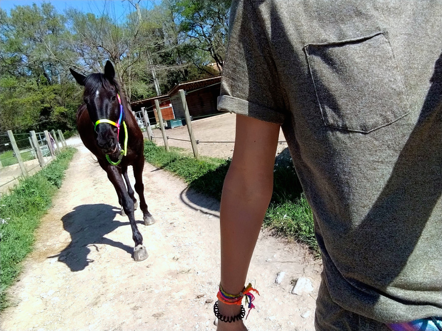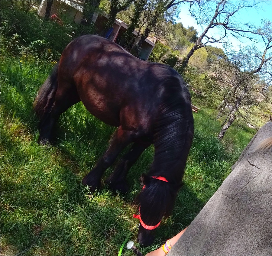 Surtout quand on est passé à côté de notre champs de courses(les allées d'oliviers), là on a longé, mais il a voulu lui partir au trot et aurait voulu aller dans l'allée, c'est rigolo, ça doit lui plaire de pouvoir trotter à fond les ballons dans cette allée, la prochaine fois je nous ferais ce petit plaisir