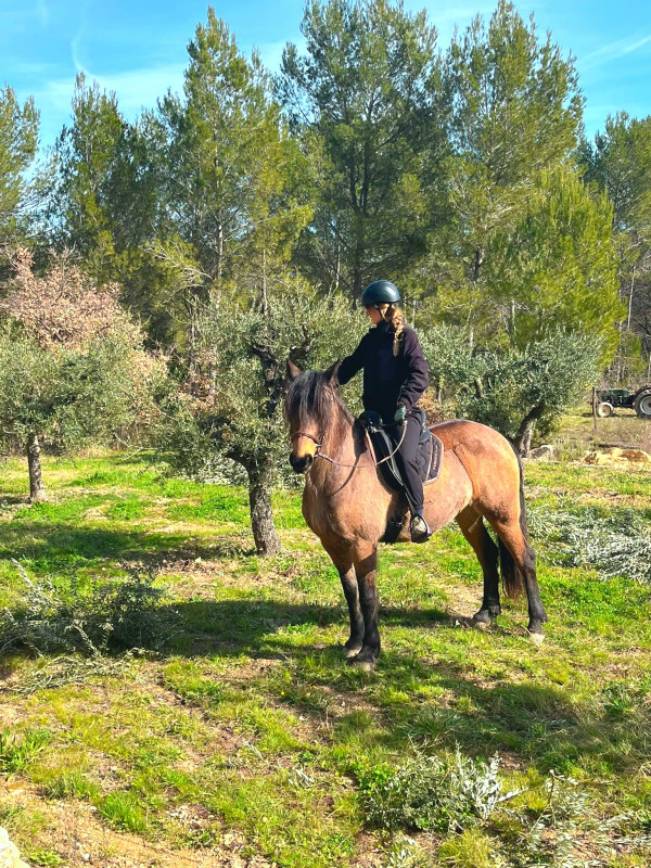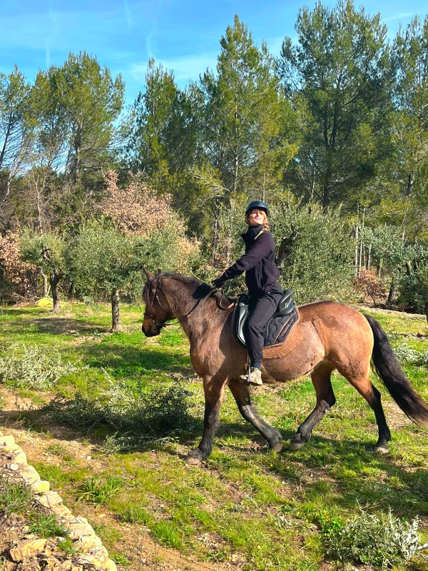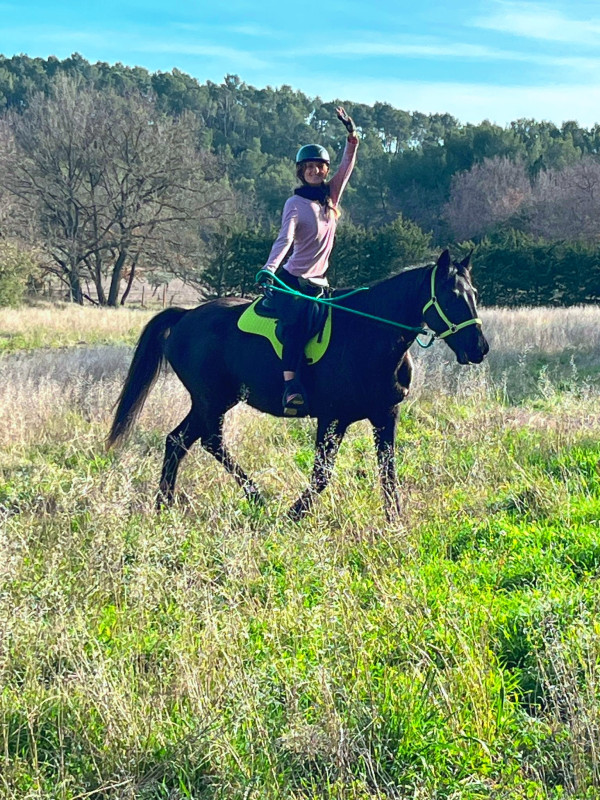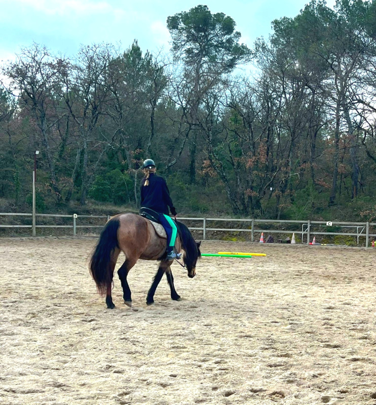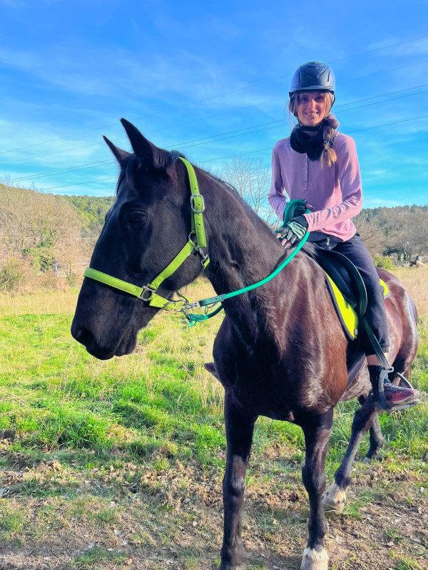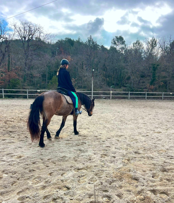 , plutôt posée, à l'écoute, avenante, pas une fois elle n'a rechignée, pas de pet en l'air, le top du top vraiment trop contente et trop fière d'elle