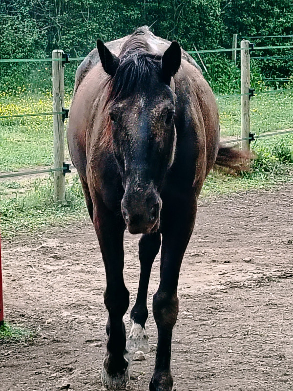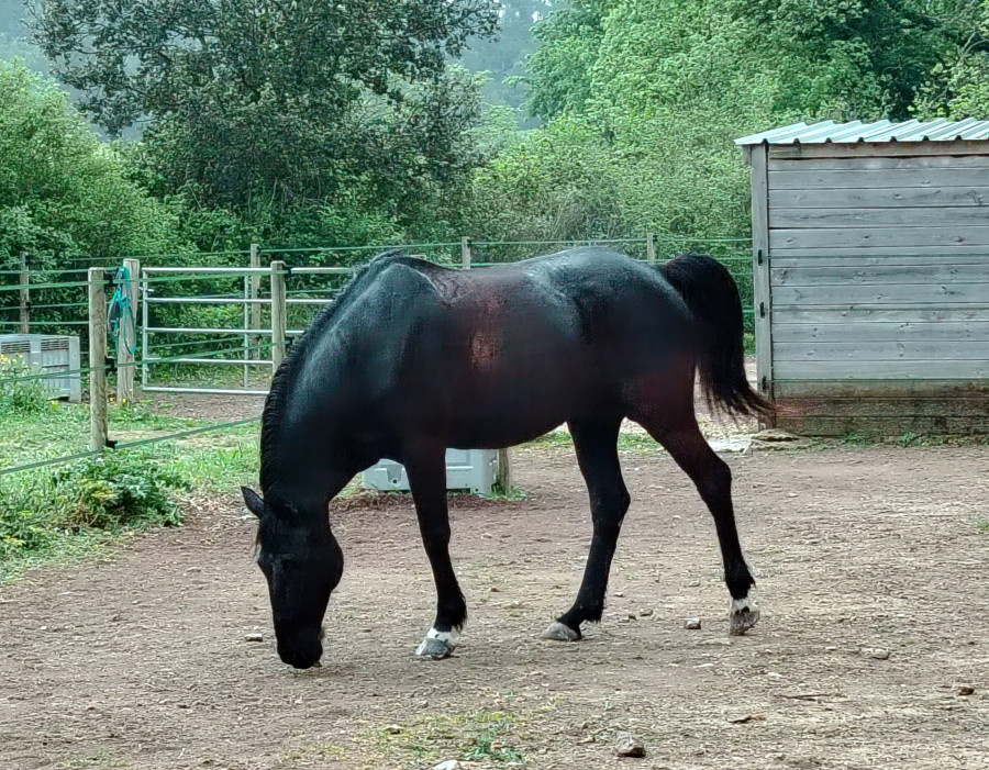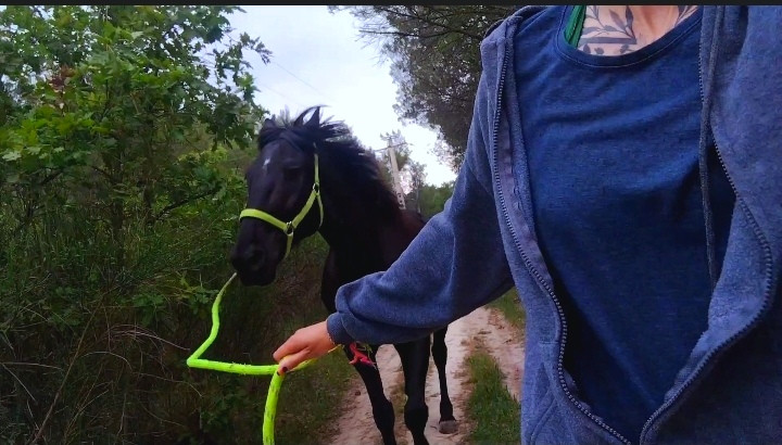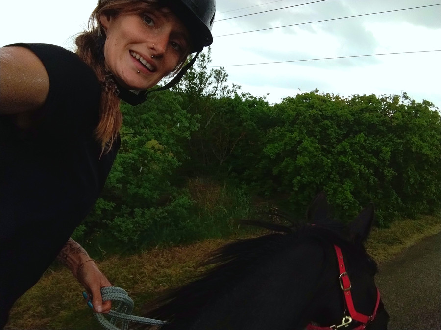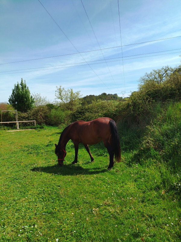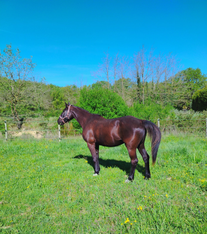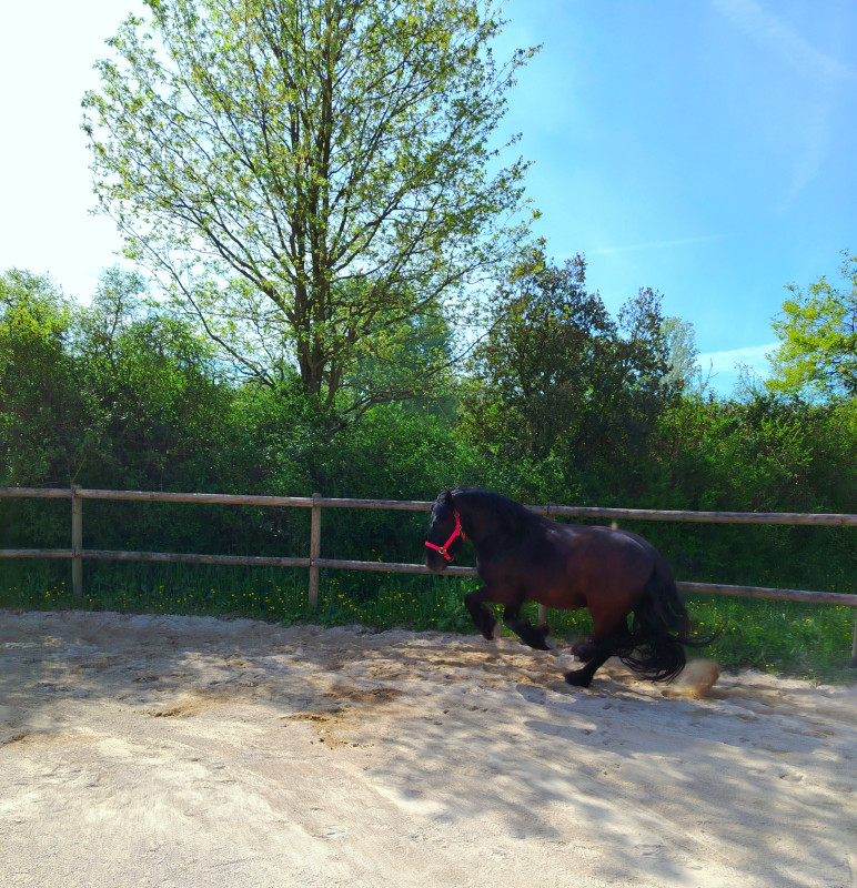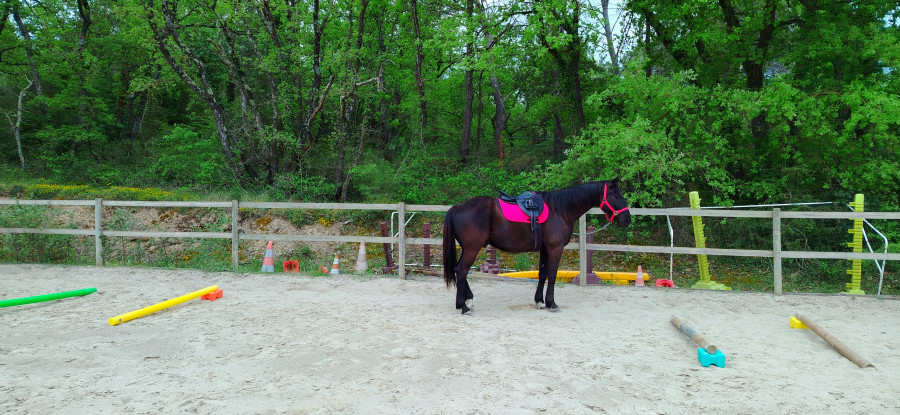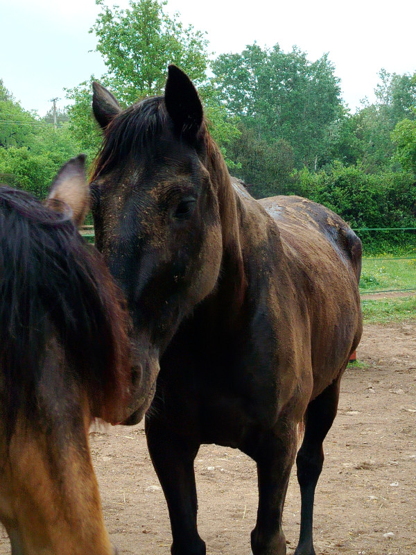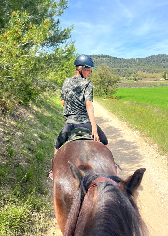 ) ni une ni deux je la reprends dans mes jambes correctement et lui demande d'avancer, j'ai senti qu'elle avait envoyé un peu les fesses, et on continu notre ligne, elle prend de la vitesse, j'accepte tout en temporisant, on repasse au trot, en haut elle reprend le pas, je lui demande donc un effort supplémentaire, on reprend le trot au tournant sur un petit chemin, et cette fois bien dans le calme nous finissons cette partie, on repasse au pas, et on finit la balade en marchant