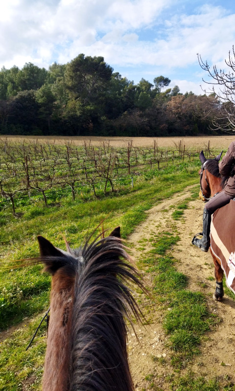 Hier petite balade avec une fille de l'écurie et sa jument c'était super sympa, on est resté au pas tranquillou il faisait un temps splendide