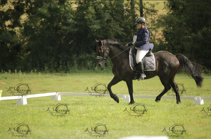 Après, on était à Doissin en CCE. Le dressage se passe bien, mis à part un galop a gauche un peu traversé et les cessions qui sont pas sorties tout de suite parce qu'il crottinait. On sort en 66% et je suis déçue Impression de pas progresser...