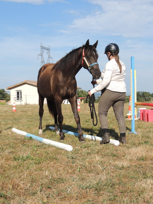 La reprise GP pour faire simple, j'ai pas appris la bonne, du coup on me l'a dicté, j'entendais à moitié, une catastrophe. Pour finir, Dino a marché sur ses renes et peté son filet de concours. RA-VIE!