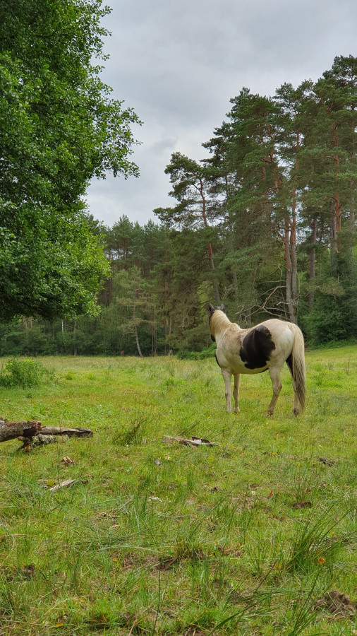 J'ai donc installé le foin à l'ombre, j'ai ajouté un bout de pré et une amie est venue en balade, pour 7km, et elle a pu galoper un coup avec Loulou. Ça lui a fait plaisir car elle ne peut pas trop le faire avec ses chevaux !