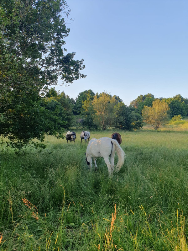 Pour le moment, je me retrouve avec deux discours de cheval immontable ou de "un problème de cartilage et il faut juste pas sauter" mais qui peut vivre sa vie tranquille, donc on va avancer doucement pour voir où cela nous mène. Il vit pour le moment sa vie de cheval sans problème ni boiterie, donc je prendrais le temps de trouver un bon véto !