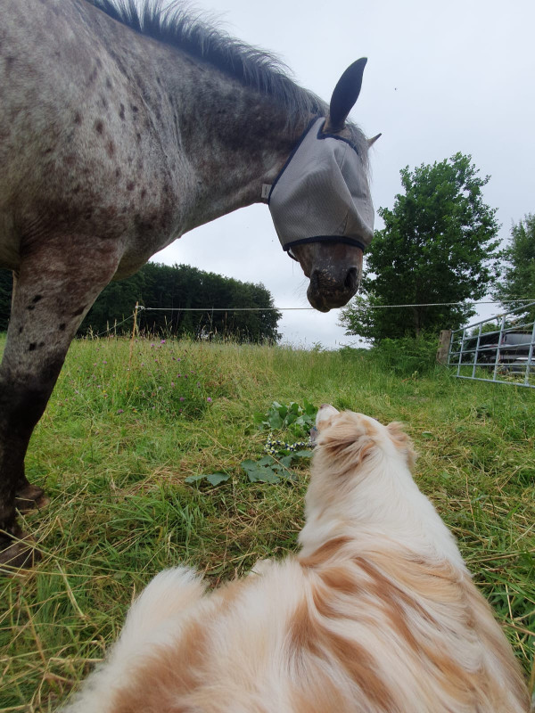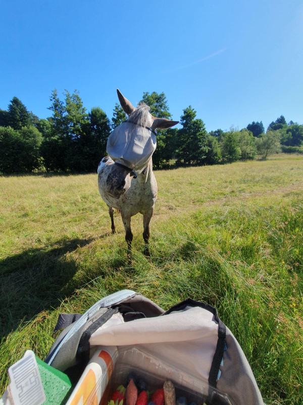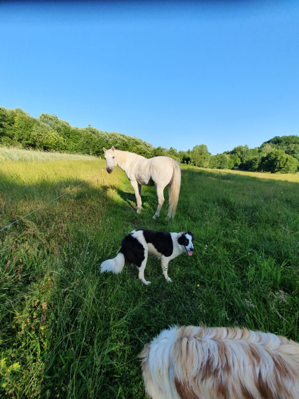 Lui est en pension, surtout pour des soucis d'herbe, car une copine d'Ulotte doit éviter au max le foin.
