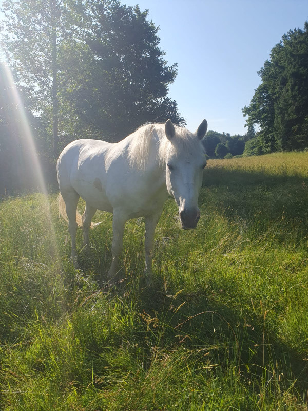 Enfin, l'inattendu, le gros Lyssou, l'ours polaire, mon beau Ulysse. Disons qu'il ne devait pas me rejoindre aussi "tôt", mais le cœur a ses raisons que la raison n'a pas… Connemara osseux de 17 ans, et toutes ses dents ! (enfin j'espère xD)