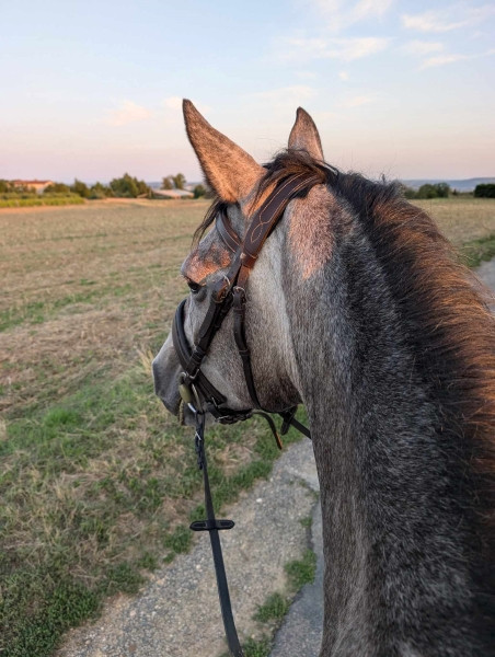 le seul souci c'est que j'ai pas pu avoir l'arcade en Medium-Wide, c'est une Médium et c'est un peu petit, je ne pourrais pas recevoir une autre arcade à temps donc faut que je me décide sans malheureusement. On voit que du coup le pommeau est légèrement plus haut mais bon sans terrain plat c'est pas super facile à voir. Je n'arrive pas à me faire un avis, selon moi c'est pas cata mais c'est pas non plus le perfect match. Déjà au galop elle a quasi pas avancé, ce qui est un bon point. Mais je trouve que l'arrière pose pas forcément bien, ça suit pas exactement son dos, l'avant est un peu serré du coup, même si la forme, selon ma très maigre expertise, semble ok.