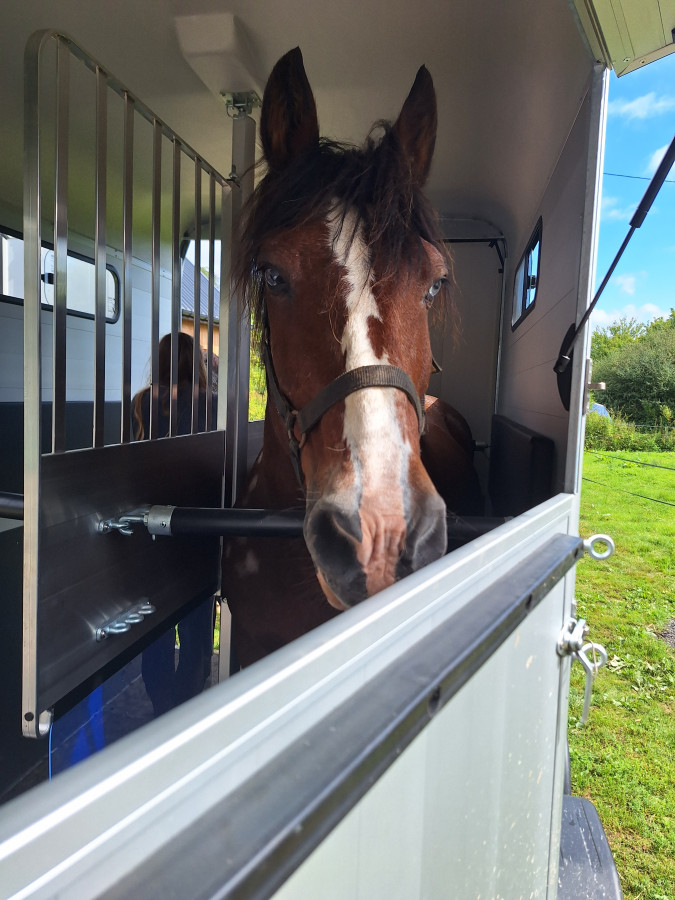 Directement avec 2 chevaux, mon demi trait et une jument de 3ans dont c'était le premier voyage