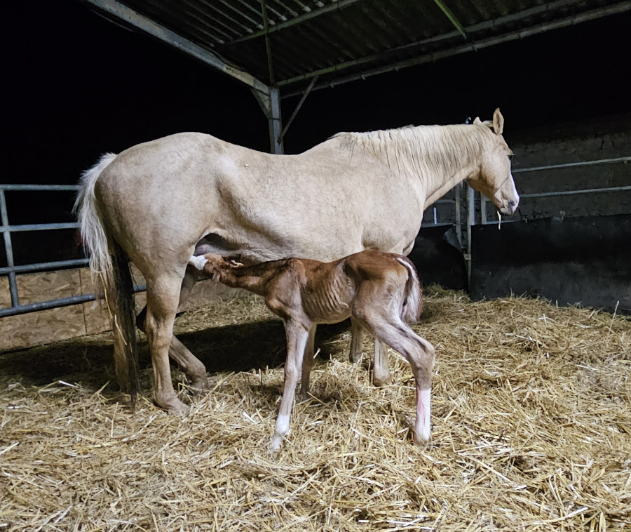Vitamine , sans surprise vu comme elle était super prête, a mis bas hier soir d'une petite pouliche alezane
