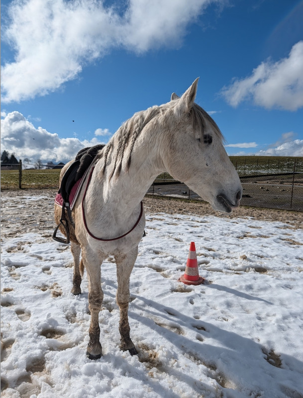 Au départ en licol, je beug en étant pas logique dans la main et le côté choisi mais il est mignon ! Je finis par faire les choses dans le bon sens mdr et il est top !