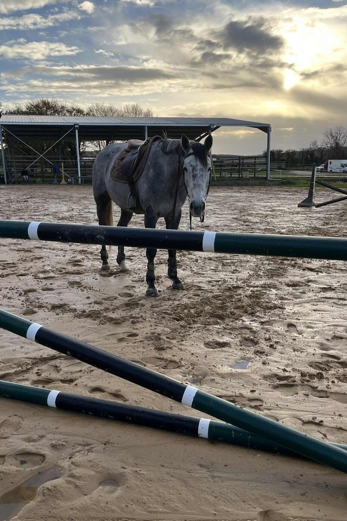 Joli bonhomme né en 2019, un croisement entre Upsilon et Mylord Carthago (on ne se refuse rien). Avec cette génétique de rêve, il est évidemment un peu tardif. Il a été débourré à trois ans, remis au pré l'année de ses 4 ans avant de commencer le travail en décembre 2023. Il a fait quelques concours cette année avant que je ne l'achète, mais est encore assez vert et a tout à apprendre. Il est foncièrement gentil, déjà plutôt pratique et beaucoup moins caractériel que ce qu'on pourrait attendre - même s'il fait quand même quelques bêtises. Et pour le moment, il toise 1,59m.