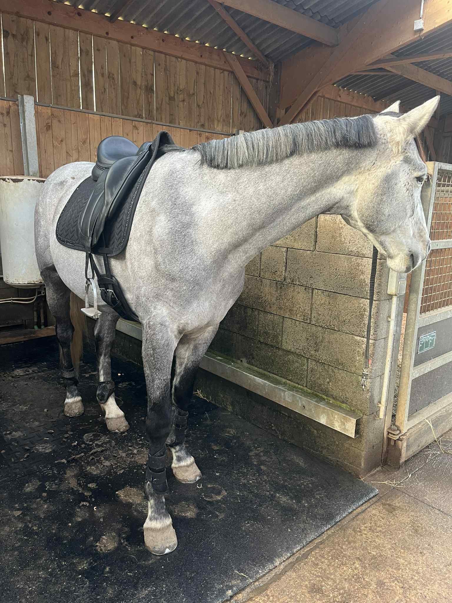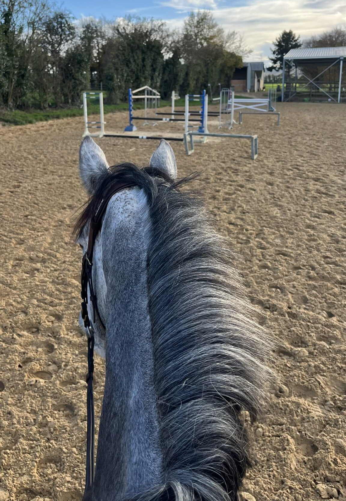 En résumé, j'avais un cheval avec BEAUCOUP d'influx. Alors il reste très gérable, je me fais pas du tout trimballer, mais il a pas très envie de se compacter dans ces cas là. Du coup tout ce qui était distance en avançant, il était parfait, quand je voulais réduire l'amplitude par contre, j'en ai chié.