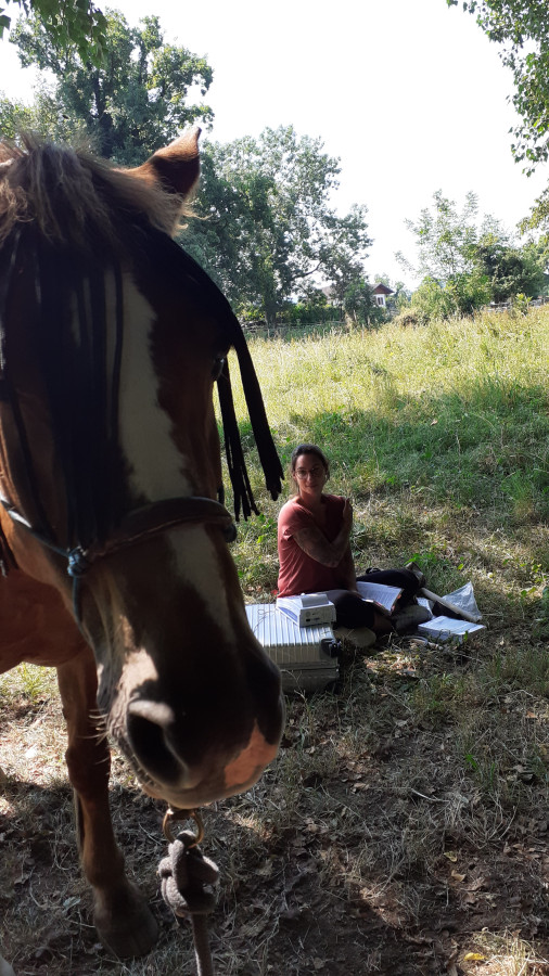Un cheval qui reviendra et dont il faudra que je trouve les déclencheurs car il était très bien et détendu avec moi puis avec sa proprio (stressée) en pâture.
