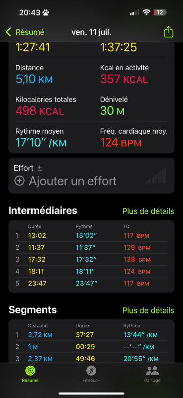 Sortie d'1h (2,6km) tous les 3, un Zouzou content, des moments précieux