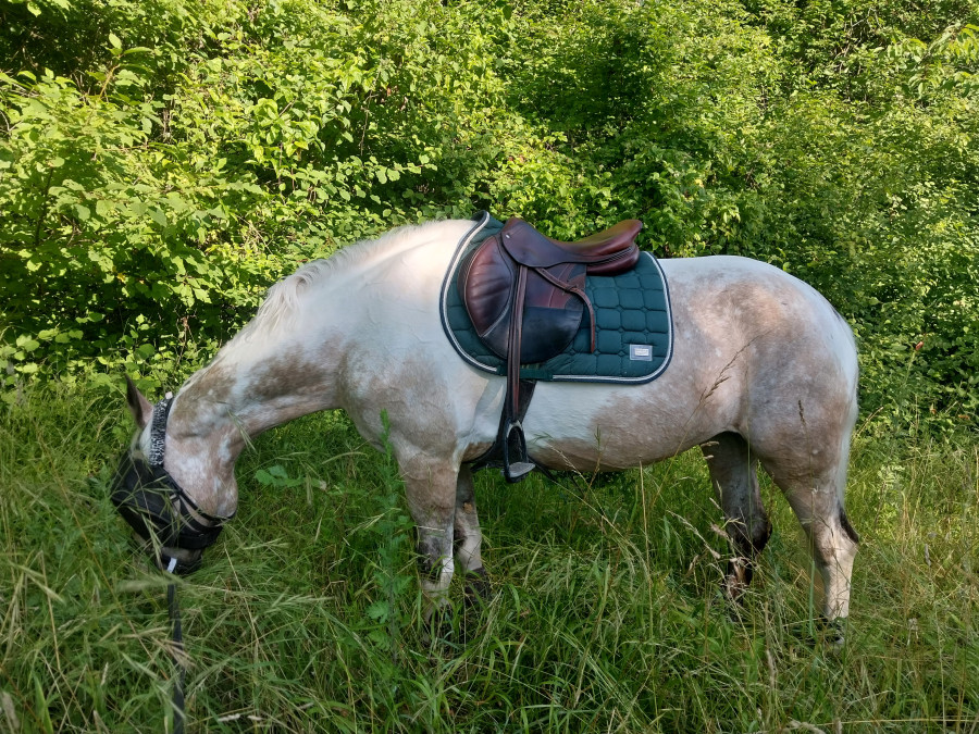 +10.5km ce matin. Une Texou en grande forme ! Au pas déjà elle avançait bien. Elle a eu un bon trot. Quand j'ai tournée pour prendre un chemin elle a directement fait un petit cri de joie et au galop moyen.