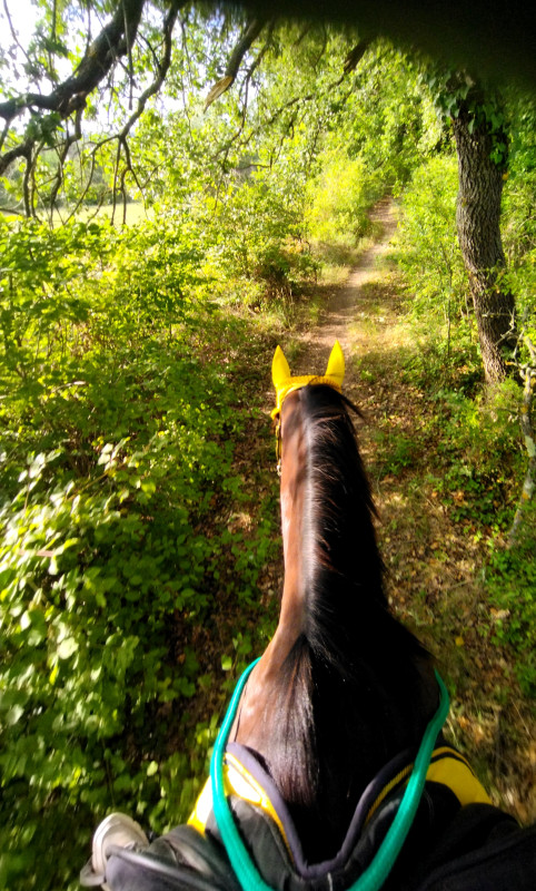 Semi-trotting aux LR hier soir. Je déteste courir bon sang, et c’est la reprise pour moi aussi, j’en bave. On s’est fait harceler par les taons dès qu’on était sous les arbres, une plaie.