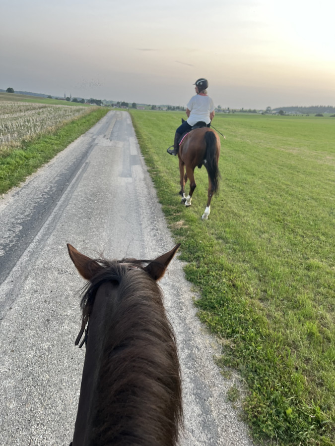 Elle ne prend pas de débourrages pour l'instant car la cavalière qui s'en occupait est partie en études et il faut un bon niveau pour un jeune cheval.