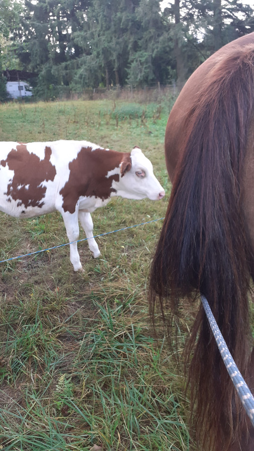Hier le voisin de la pâture nous a appelés, pensant qu'un cheval blanc s'était échappé. Mais non, il avait mal vu dans l'étendue verte (ça m'est arrivé aussi, au début)