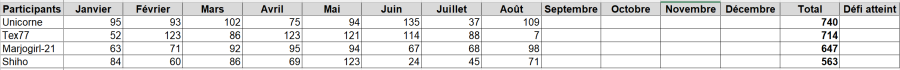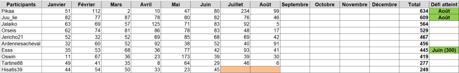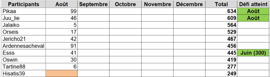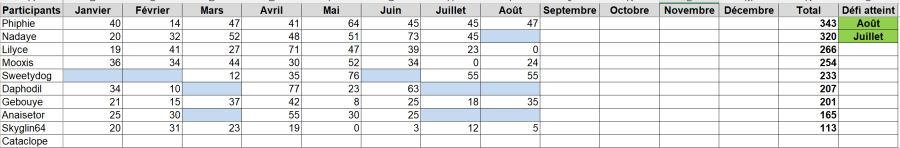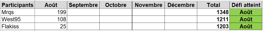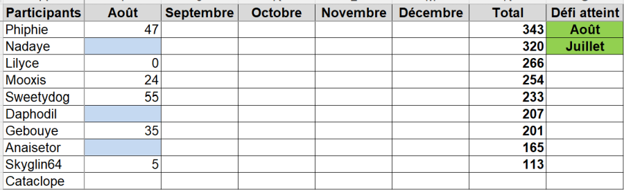 Félicitations à phiphie, à pikaa, juu_lie, à mrqs, west95, et à flakiss qui terminent tous leurs challenges respectifs ce mois-ci !