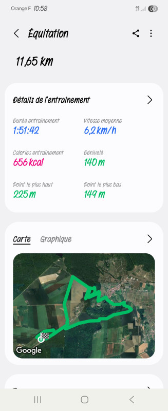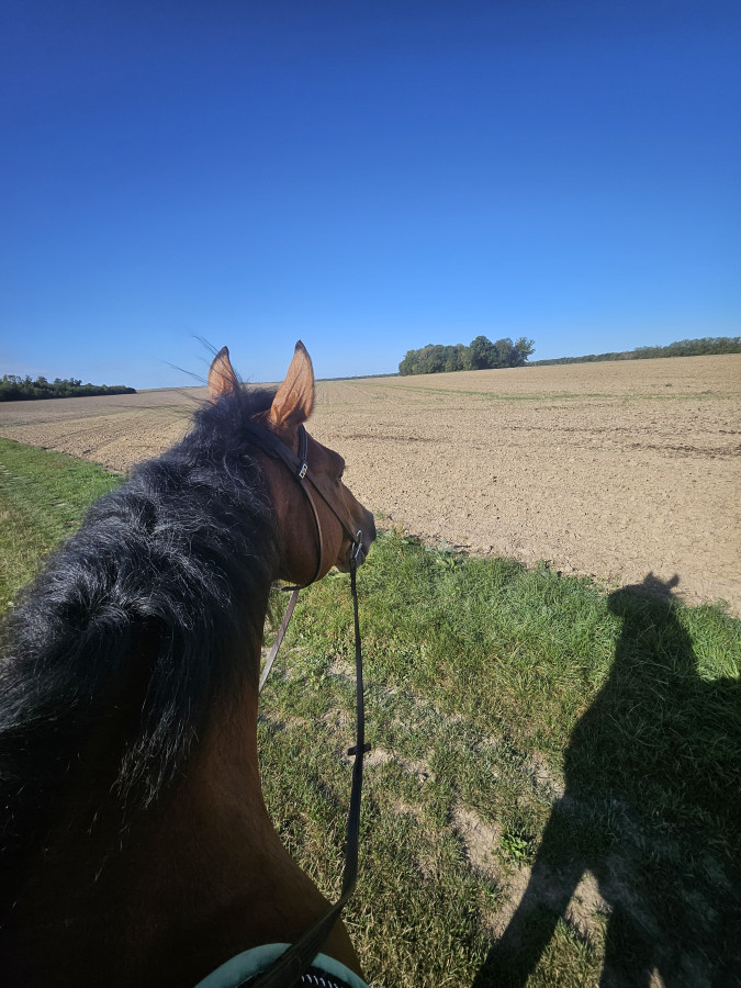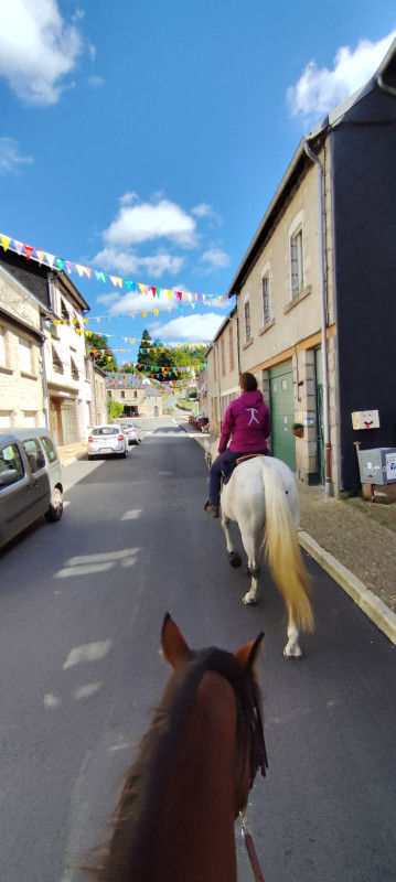 Comme on avait fait 26km hier, on s’est contenté d’un petit tour de 3km histoire de les décoller du râtelier. Le paddock est joli en surface mais il y a des crottins partout, du coup mon cheval stagne au foin et ses tendons sont gras.