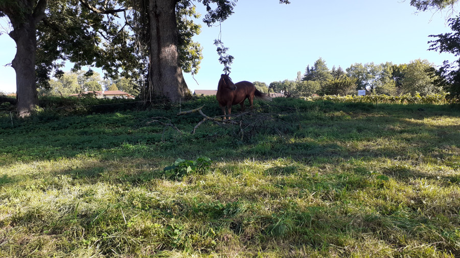 Elle a brouté un peu en sortant, le temps que je la brosse. Ça l'a posé un peu.