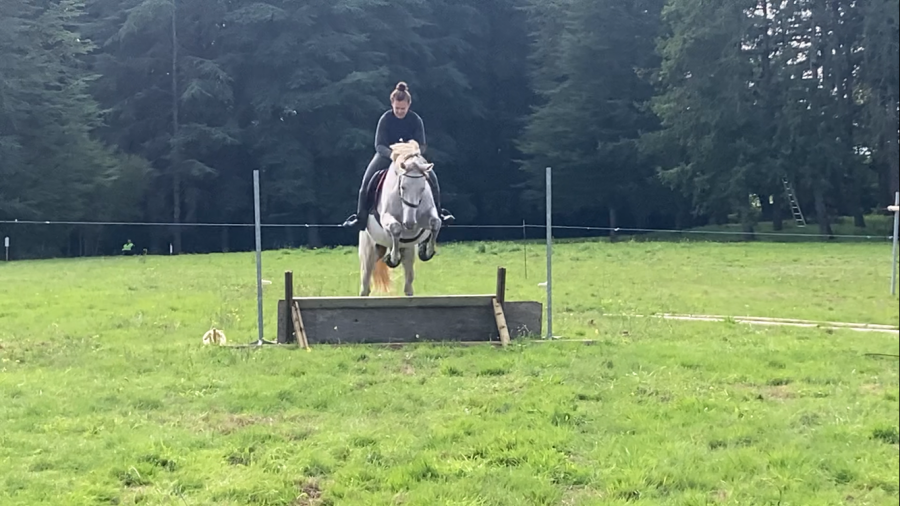 On l’a fait pour rire, à toute petite vitesse vu qu’il est regardant et que j’avais peur de glisser. Il n’a pas aimé la bâche mais le reste il a été super sage : ruelle en Z, branche basse (avec rubalise qui pendouille), bâche, immobilité monté dans un cercle, petit saut, bordure maraîchère dans la foulée (y avait intérêt à sauter au milieu sinon compliqué d’enchaîner sur la bordure maraichère), barrière à ouvrir / fermer, trèfle, slalom, objet à déplacer d’un chandelier à l’autre en reculant, et saut d’un autre obstacle.