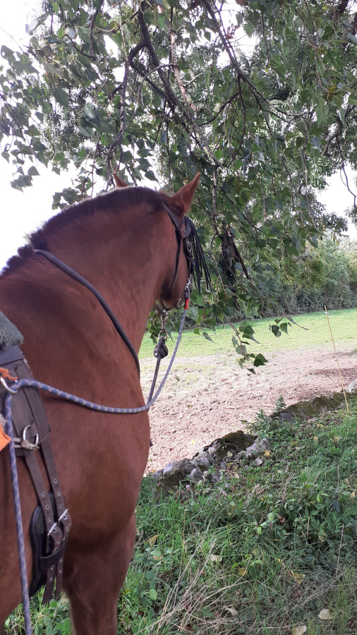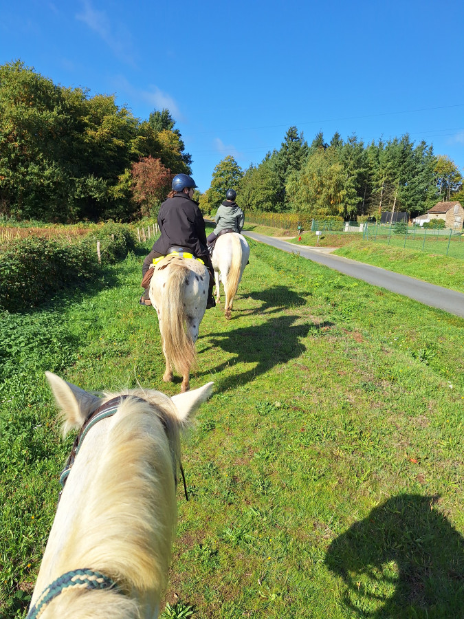 Aujourd'hui après séance en carrière on a été faire un petit tour dehors en LR, 30 minutes de 2,1km, poney très sage