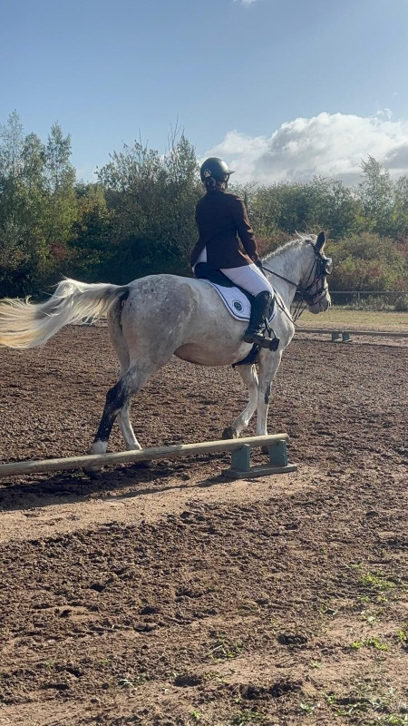 Aujourd'hui c'était concours de dressage, on était les seules sur la club 1 donc on gagne mais la Texou était top, des choses mieux avec des 7.5 au galop et au pas. Bon le trot c'est pas notre allure mais elle améliore le % quand même.