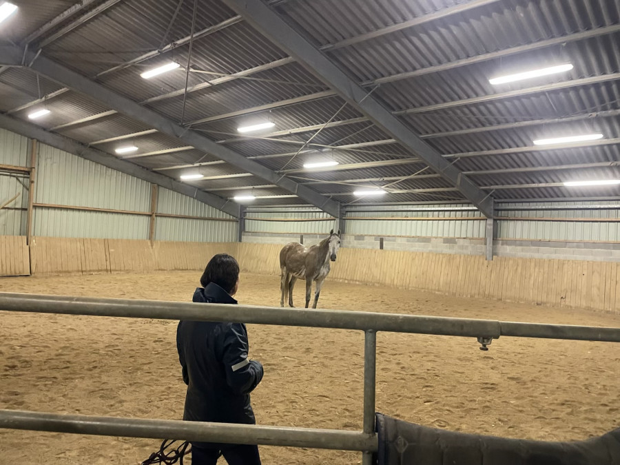 On a posé le Poilu dans le manège le temps de débriefer au sec.