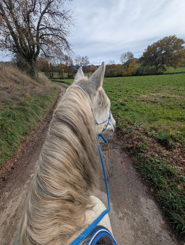 Sortie du taf assez rapidement pour partir en extérieur. J'avoue que j'ai hésité avec la carrière mais non ^^ Let's go pour un trotting/galoping. Mama ! qu'elle a été super. 15km en 2h.