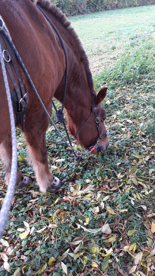 Ce n'est pas moi qui gère. Je n'aurai pas autorisé d'être ferré(en métal) des postérieurs. Surtout que là, elle est pleine. Je ne sais pas si elle sort beaucoup...