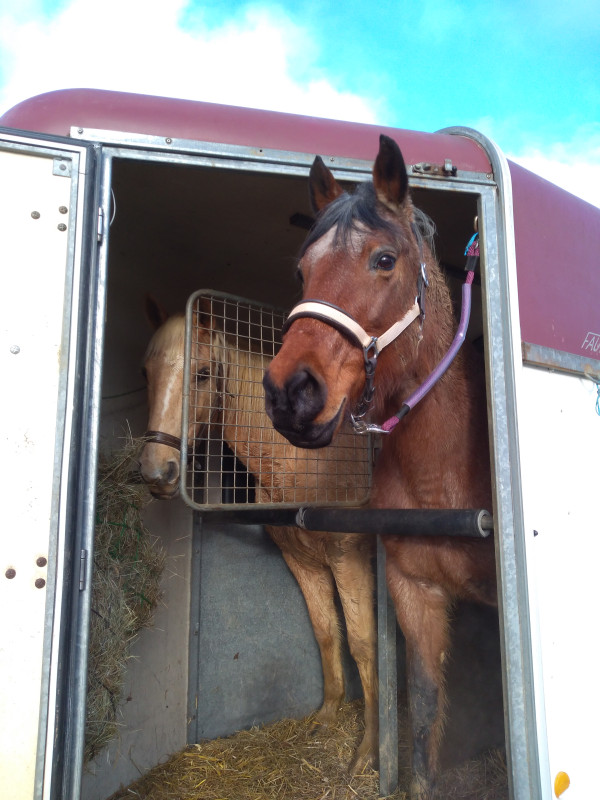 On était 12 cavaliers mais ça s'est bien passé, Praline ne quittait pas Touco, par moment c'était un peu relou car elle voulait le coller, mais au final ça a été et je suis fière d'elle car a la fin on a fait deux groupes pour le dernier km, un qui est rentré par un chemin très en pente et caillouteux et un qui est rentré par la route et Touco est parti par le chemin en pente alors que moi j'ai choisi la route et elle a henni mais n'a pas fait des siennes pour quitter Touco. Puis on est arrivé tous en même temps au van et après la rando repassage chez N* pour récupérer quelques affaires et ramener N* puis retour au bercail !