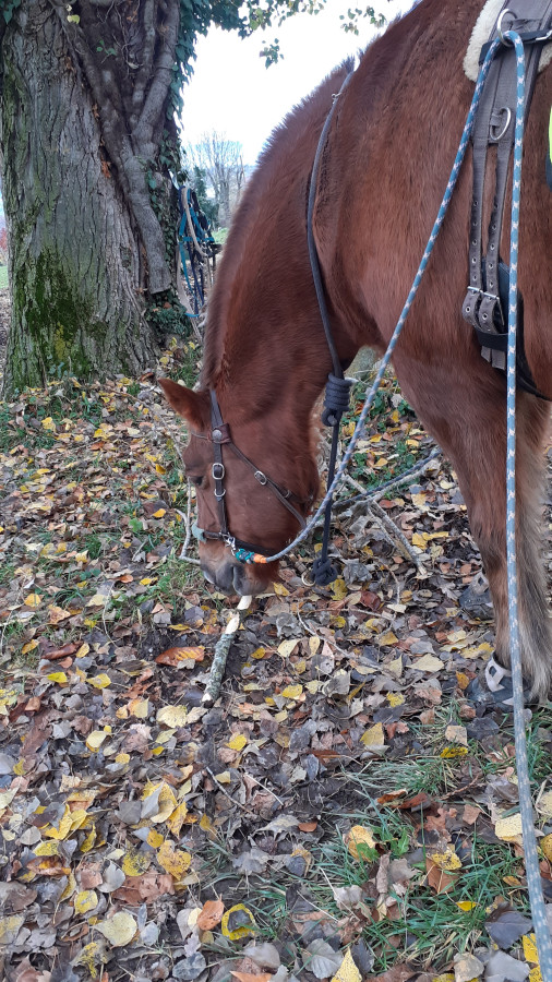 Du coup reste de la balade on a fait du pas et pas mal de trot ça nous a bien réchauffés ! Le tout en extension pour bosser ce petit dos ! Il a été top ! Bon a des moments il prenait le galop au lieu du trot mais à des moments il m'a sorti un trot de fou