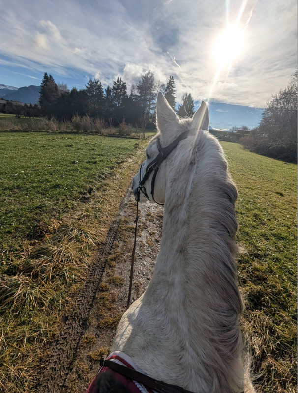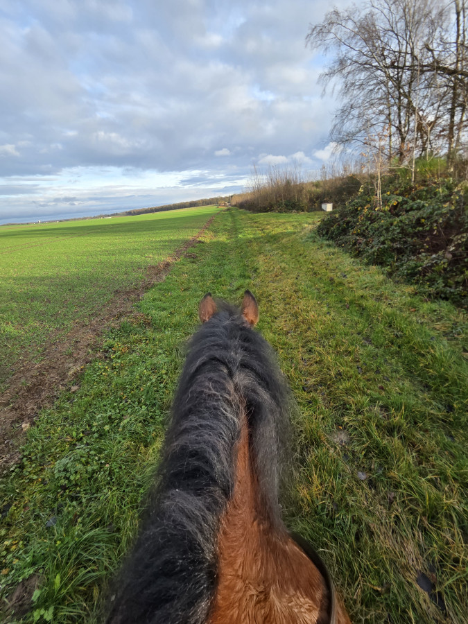 Balade tranquille, de temps en temps faut voir le fun dans nos sorties et sans objectifs. J'ai ressorti la selle western J'avoue que je préfère ma ponette avec ce type de selle, haha ^^ Même moi ça m'a fait du bien de profiter de l'instant T, mettre pied à terre et marcher à côté d'elle (ce que j'aime beaucoup faire), les 3 allures sans pression et une pointe à 39 km/h quand même X) avec une chouette récupération au trot pi au pas tranquille pour rentrer.
