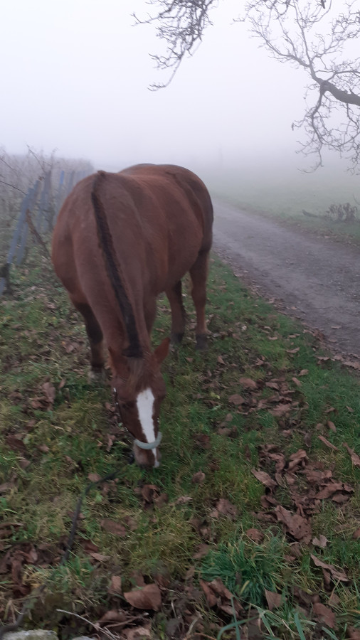 Puis quand elle broutait près des poules, elle s'est pris un coup de jus du secteur en touchant le fil (qu'ils ont mis pour les renards)