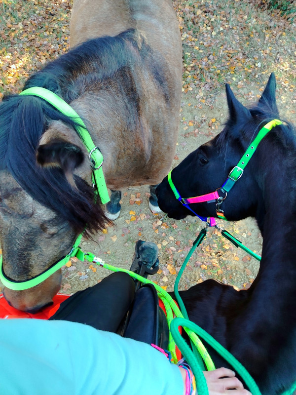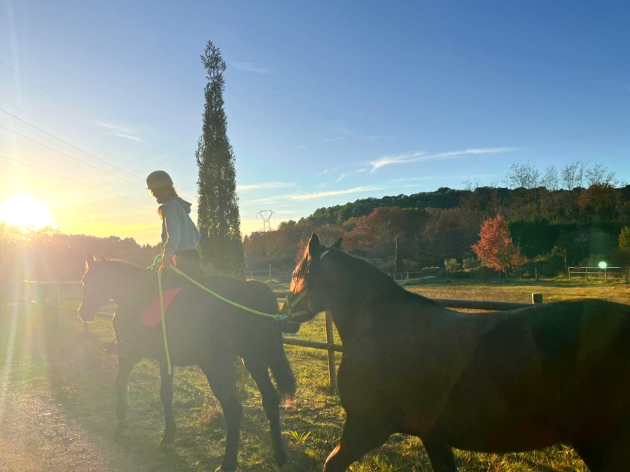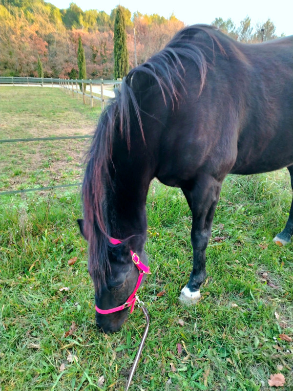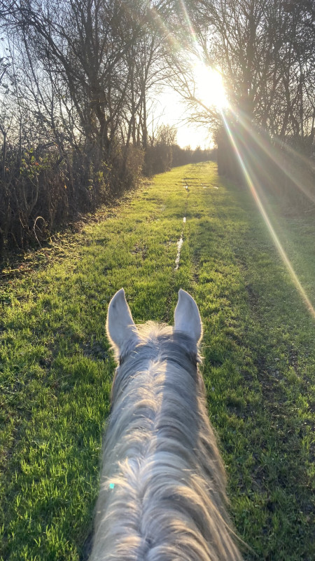 On a fait que du pas sauf le grand galop dans le chemin qui remonte et un peu de trot sur le retour, le tout en cordelette, parfait poney (bon au grand galop j'ai réussi a l'arrêter au bout du chemin mais clairement quand il était à fond je pouvais pas haha mais par contre au trot, transition au pas sans les mains )