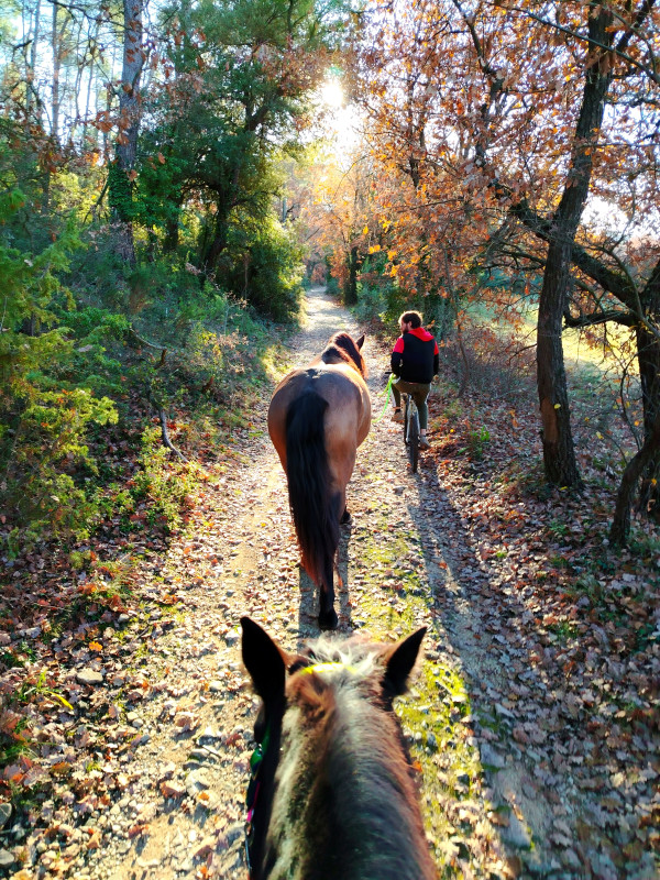 Nous hier +7km tous les 4 avec le vélo et moi à cheval, avec un temps splendide, c'était génial