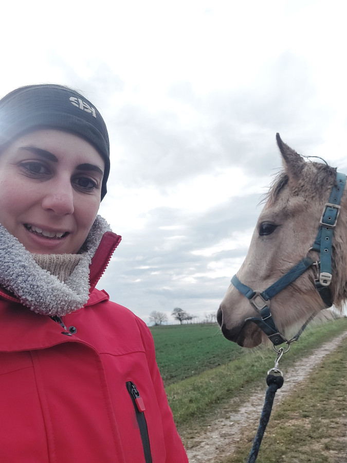 pour finir j'ai amené les chevaux au pré avec ma copine (+600m) . Cisko m'a reniflé les mains attentivement, il devait sentir Elliot (ils seront ensemble au pré cet été)