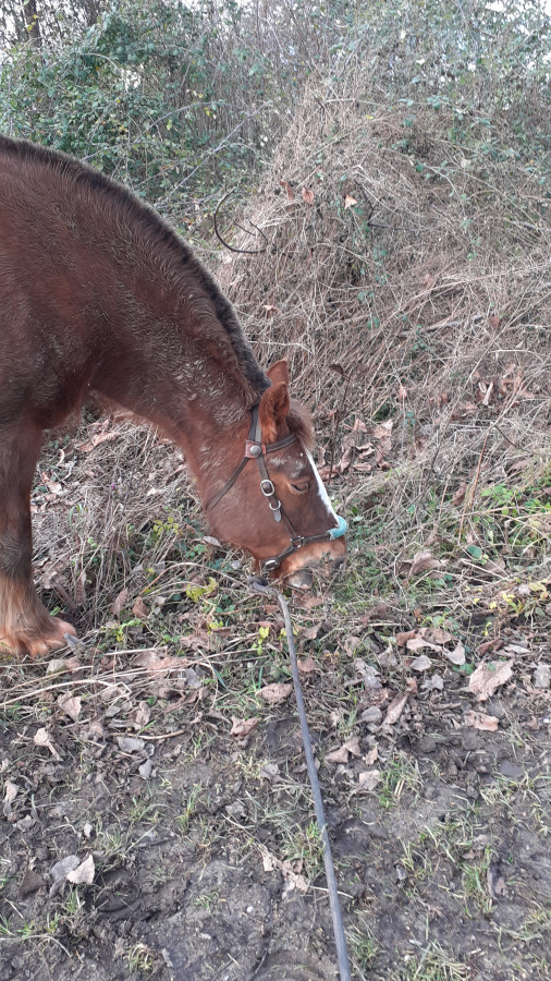 Du coup s'il a peu l'habitude de marcher + que l'humain soit pendu au licol, ça le change du tout au tout. Moi la longe n'est pas tendue et je "commande" par gestes.