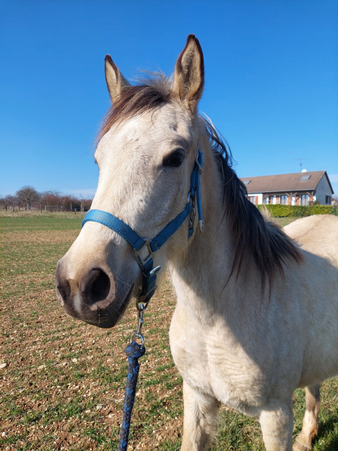 De retour, pdt qu'il mangeait son picotin, j'ai sorti Elliot, de mieux en mieux, on rajoute 20 m mais il est prêt pour + on dirait !