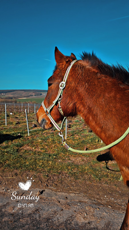 Il fait super beau ça fait du bien de prendre le soleil et ne pensez à rien, qu'à ma petite jument.