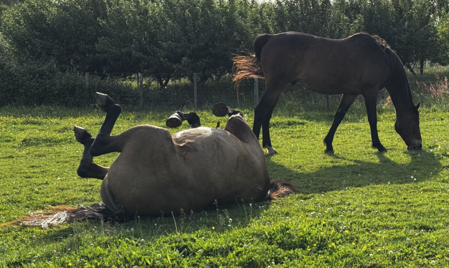 Retour aux écuries je lui fait un cataplasme d'argile sur le dos puis retour au pré où la 1ere chose qu'il fait c'est se rouler évidemment, sacré Zouzou ^^