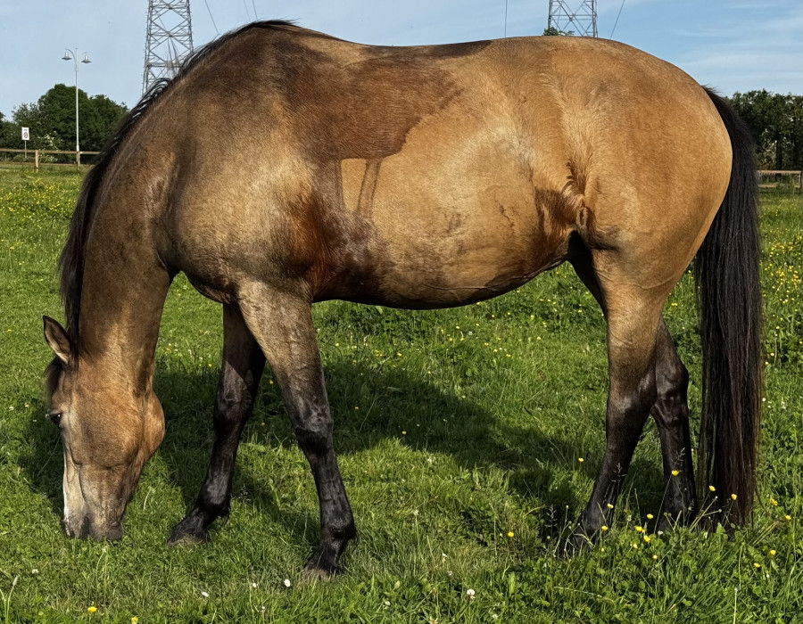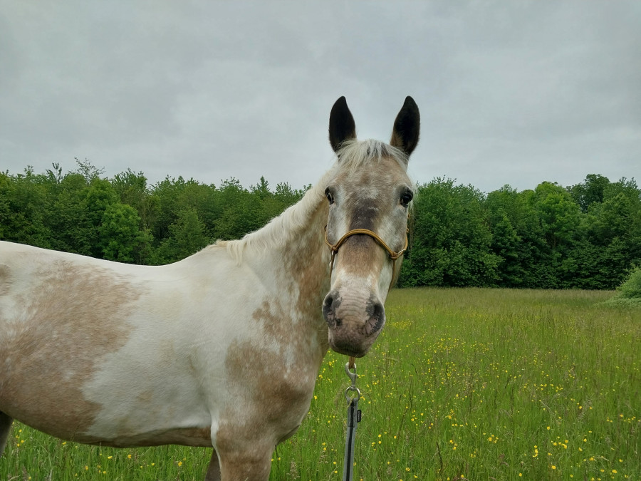 Et après elle a un autre gène qui donne les tâches blanches dans le isabelle qui fait comme des pommelures.