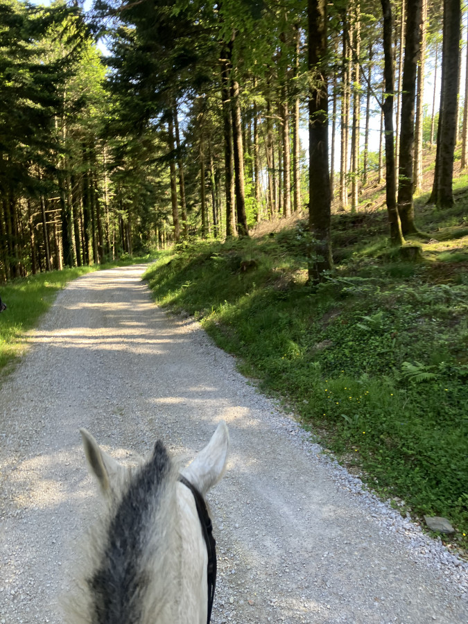 + 5.3 km en LR Il faisait chaud alors on est montée dans les bois.