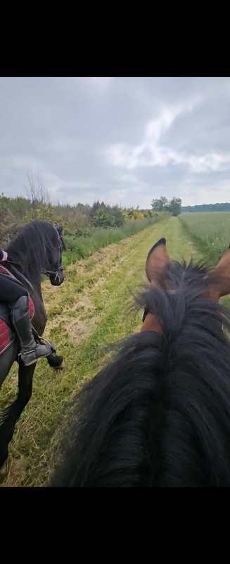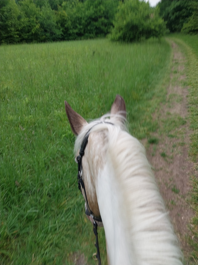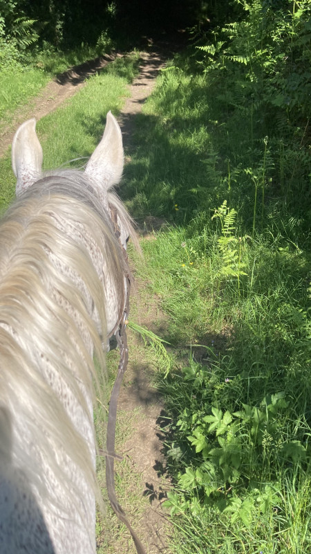 Poney un peu beaucoup chaud du coup je pensais faire tranquille mais au final on a quand même pas mal trotté et galopé ^^