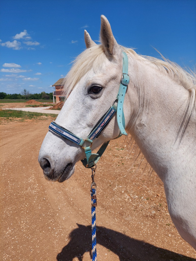 Pour commencer j'ai mis le licol etho (qui a des franges..)
