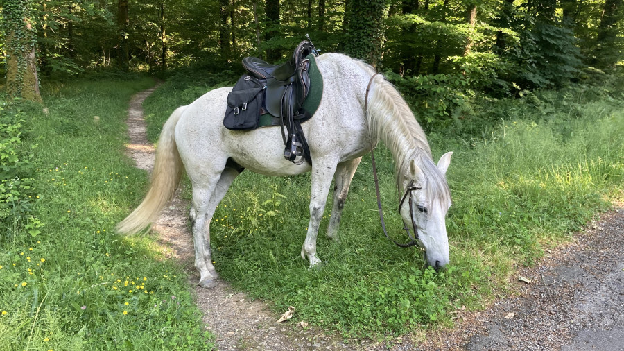 +8km ce matin. Des bons passages au trot et quelques galop. Ensuite pause broutting dans le grand champs.