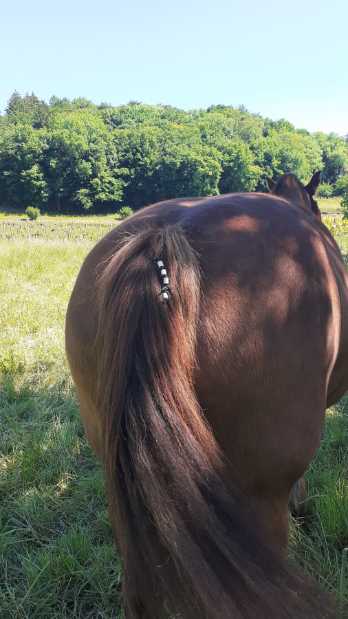 La trotteuse me tournait autour, quand même 3-4 tiques dans la crinière et quelques unes dans la queue, mais ça semble diminuer un peu.....(ouf)