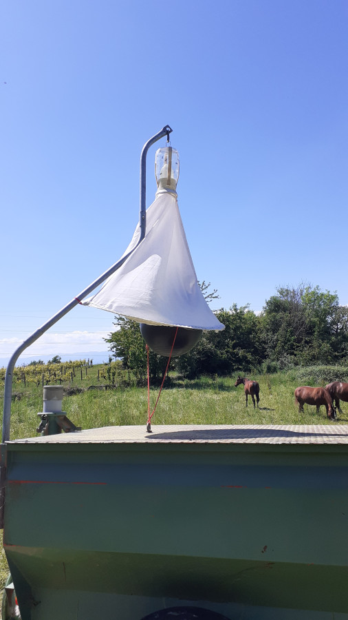 Le piège à taons fonctionne, Il y a une dizaine de taons (ça les a fait sortir qu'il fassent les foins partout )