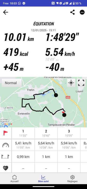 On est resté sur macadam, ça fait du bien aux tendons après les glissades et pataugeoires du pré !